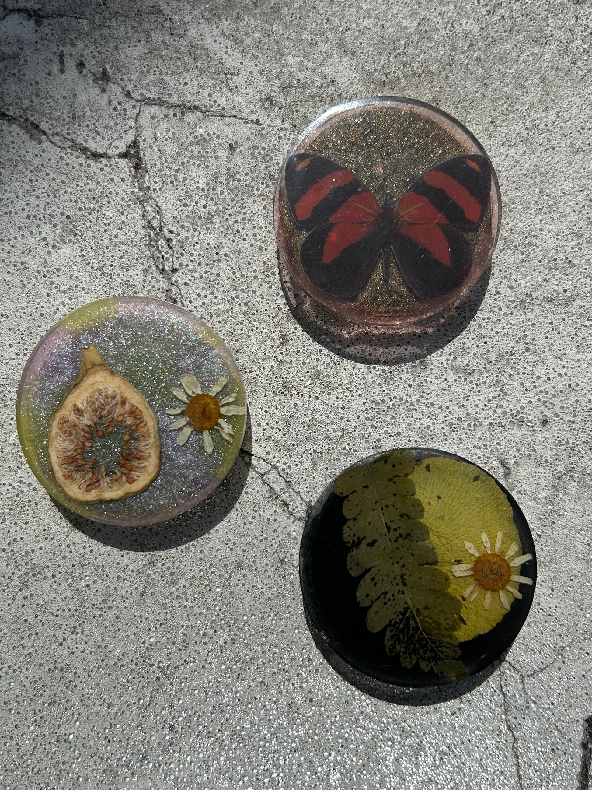 - made with resin, pressed nature, & stickers